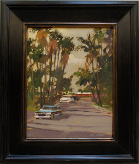 One of several new paintings going to the galleries. This is a plein air, 14x11, oil on canvas board. A great "palm" street in Lahaina, Maui.